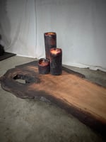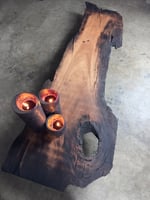 Once it lay twisted in the paddocks of Lismore — a eucalyptus slab cast aside after the floods of 2017. Water had moved through it, and time had marked it. The grain tightened, warped, remembered.